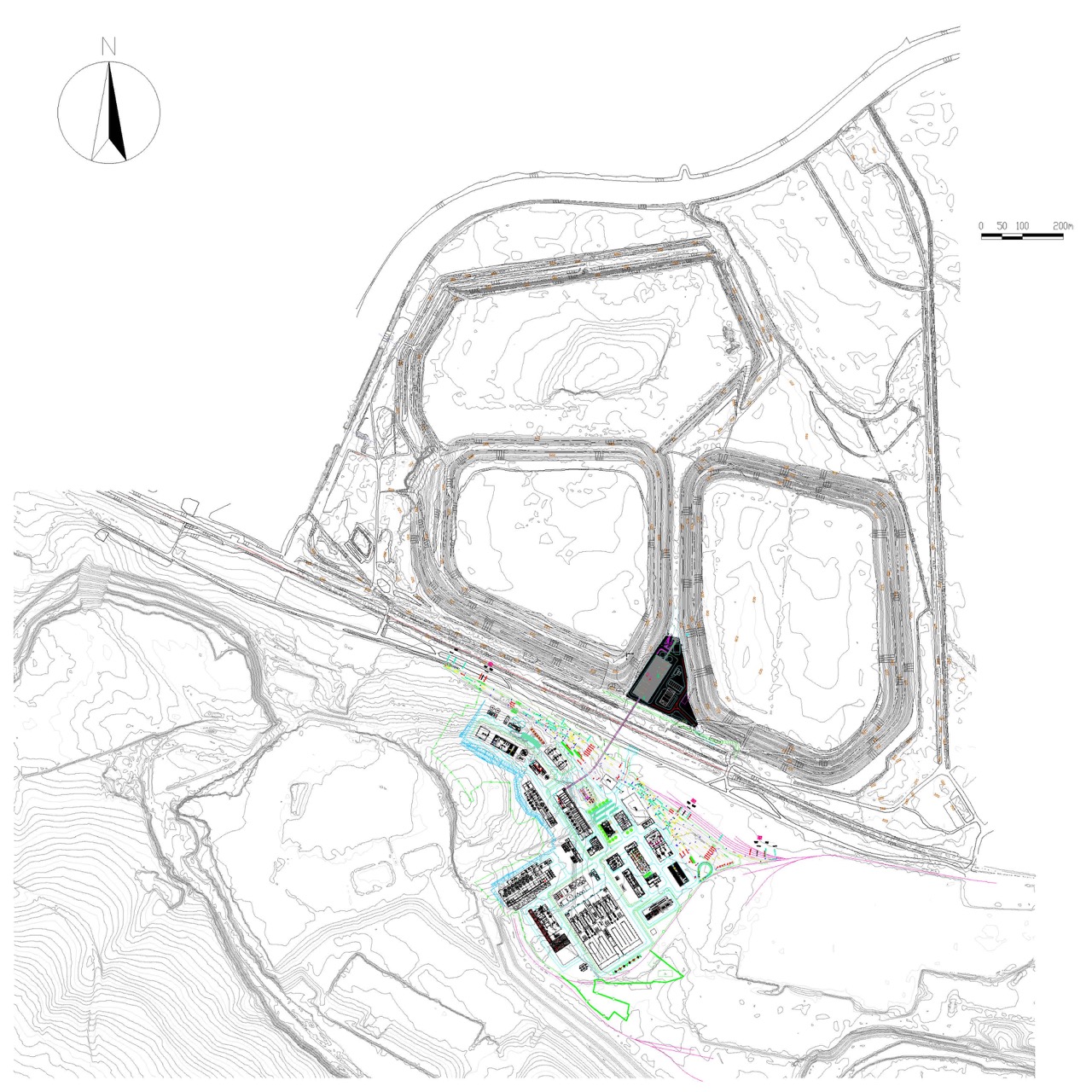 Vypraný a odvodněný nemagnetický podíl hlušiny bude dopravován uzavřeným trubkovým dopravníkem přes technologický most zpět do oblasti hald.